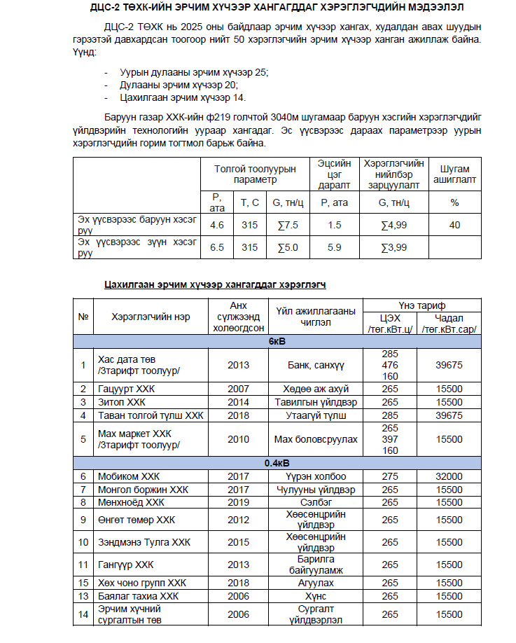 Манай компани дулаан, цахилгааны эрчим хүчээр зохицуулалттай хангах зөвшөөрлийн хүрээнд хэрэглэгчдийг цахилгаан, дулааны эрчим хүчээр найдвартай хангаж байна.